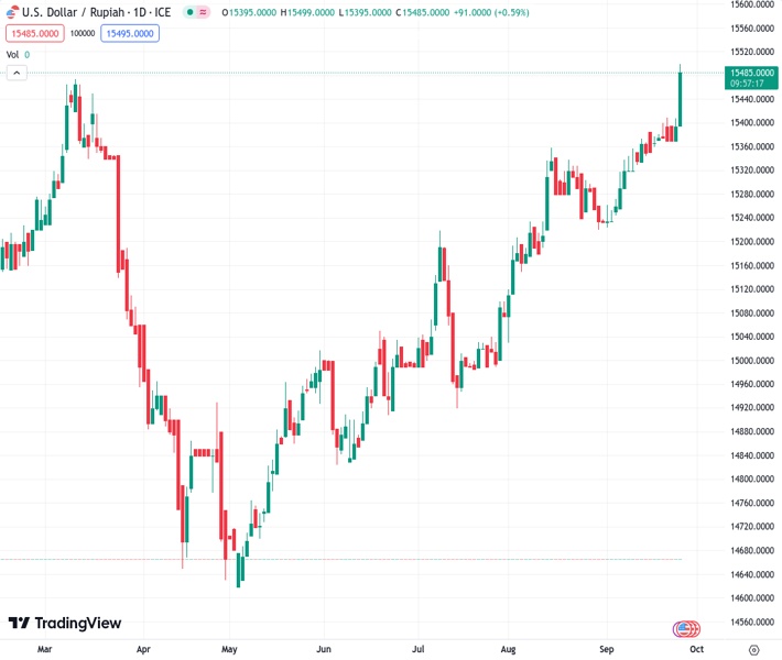 UOB believes there is still room for the USD to IDR exchange rate to increase, currently sitting at 15,485.0.