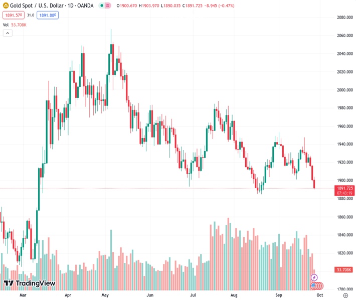 ANZ predicts that the gold price will hover around $2,000 by the end of the year, with the current value at $1,891.56.