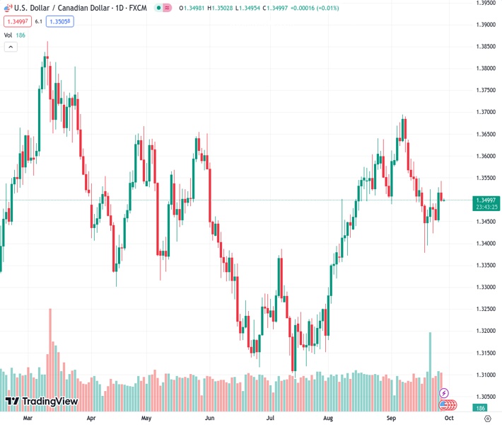 USDCAD currently trading at 1.3498 at the time of writing. Pair opened at 1.3517 and is trading with a change of -0.14 % .