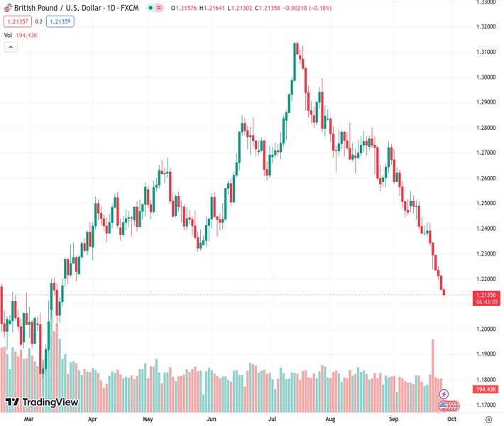 UBS predicts that the GBPUSD currency pair currently at 1.21336 has found strong support at 1.19 and is projected to reach a high of 1.26.