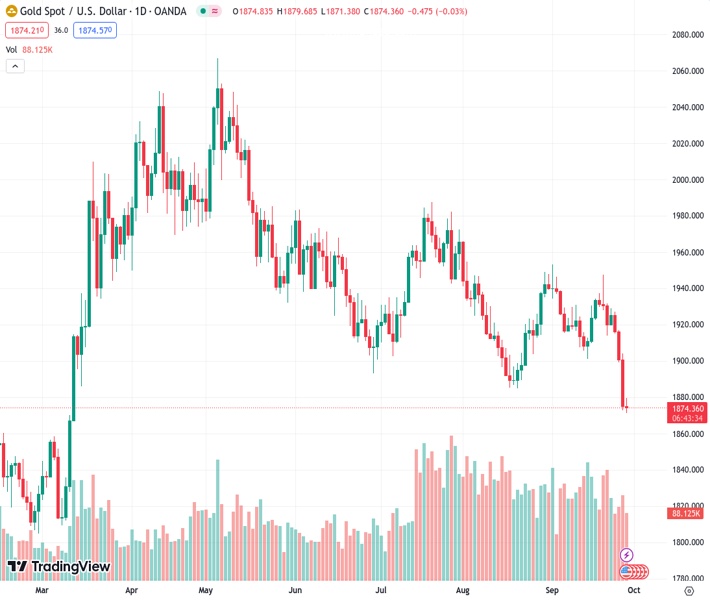 ANZ predicts that the price of gold at $1,875.21 will receive some backing due to the Federal Reserve’s decision to halt interest rate increases.