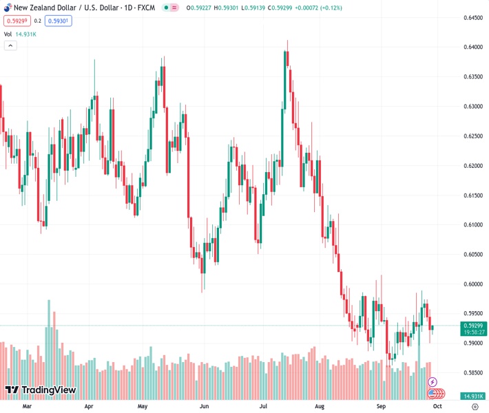 The NZD/USD pair remains on the defensive below the mid-0.5900s during the early Asian trading hours on Thursday. The stronger US Dollar (USD) and higher Treasury yields lend some support to NZD/USD. The pair currently trades near 0.5928, gaining 0.09% for the day.