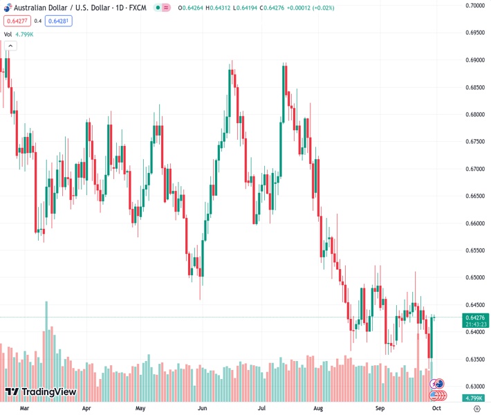 AUDUSD currently trading at 0.6428 at the time of writing. Pair opened at 0.6353 and is trading with a change of 1.18 % .