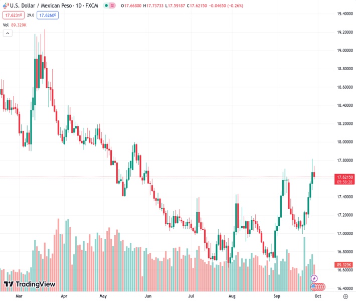 The depreciation risks for the Mexican Peso are gradually rising, according to Commerzbank, with the US Dollar to Mexican Peso exchange rate at 17.6141.