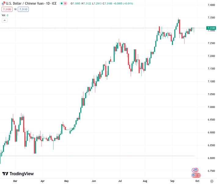 The US dollar to Chinese yuan exchange rate is currently at 7.31652, and the People’s Bank of China has established the reference rate at 7.1798, compared to the previous rate of 7.1717.