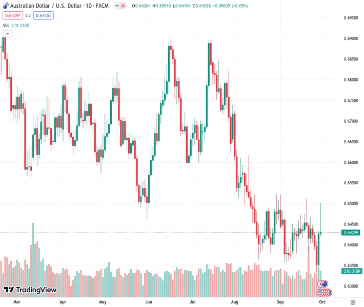 The AUD/USD has slipped over 65 pips on Friday to slide back into the 0.6430 neighborhood as the US Dollar Index (DXY) catches a broad-market lift in investor fears of an impending US government shutdown.