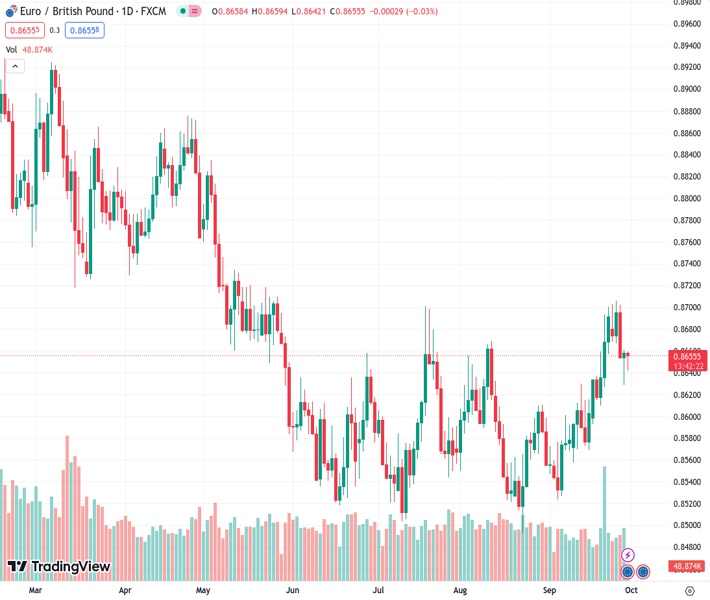 The EURGBP currency pair, trading at a rate of 0.86541, encounters a new level of selling on Friday and hovers slightly above the lowest point reached during the week.