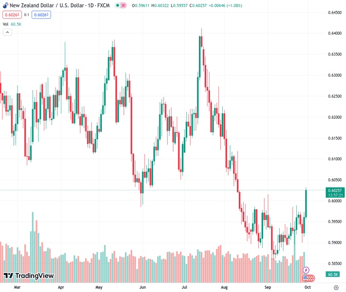 NZDUSD currently trading at 0.6027 at the time of writing. Pair opened at 0.5961 and is trading with a change of 1.11 % .