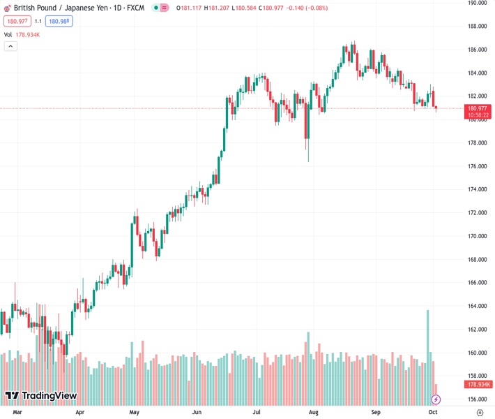 GBPJPY currently trading at 181.06 at the time of writing. Pair opened at 181.14 and is trading with a change of -0.04 % .