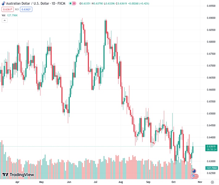 AUDUSD currently trading at 0.6357 at the time of writing. Pair opened at 0.6336 and is trading with a change of 0.33 % .
