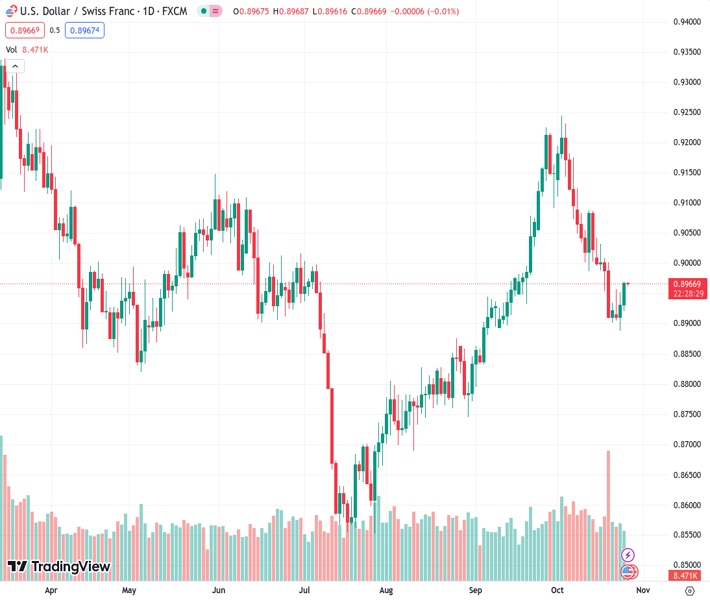 USDCHF currently trading at 0.8966 at the time of writing. Pair opened at 0.8932 and is trading with a change of 0.38 % .