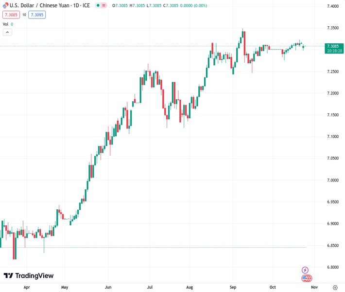 #USDCNY @ 7.30948 PBoC sets reference rate at 7.1785 vs. 7.1786 previous