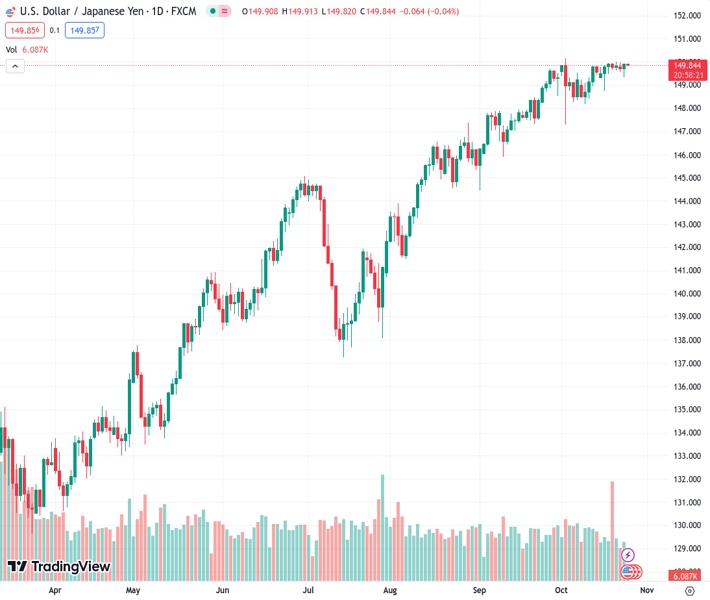 USDJPY currently trading at 149.86 at the time of writing. Pair opened at 149.72 and is trading with a change of 0.09 % .