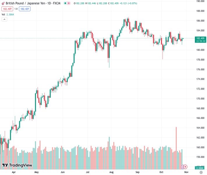 GBPJPY currently trading at 182.39 at the time of writing. Pair opened at 181.94 and is trading with a change of 0.25 % .