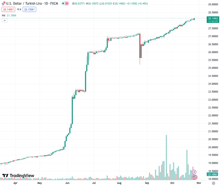 #USDTRY @ 28.1498 to be around 34.00 in the next 12 months – SocGen