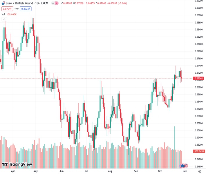 #EURGBP @ 0.87115 bottomed at a low of around 0.8695 and then recovered toward 0.8715.