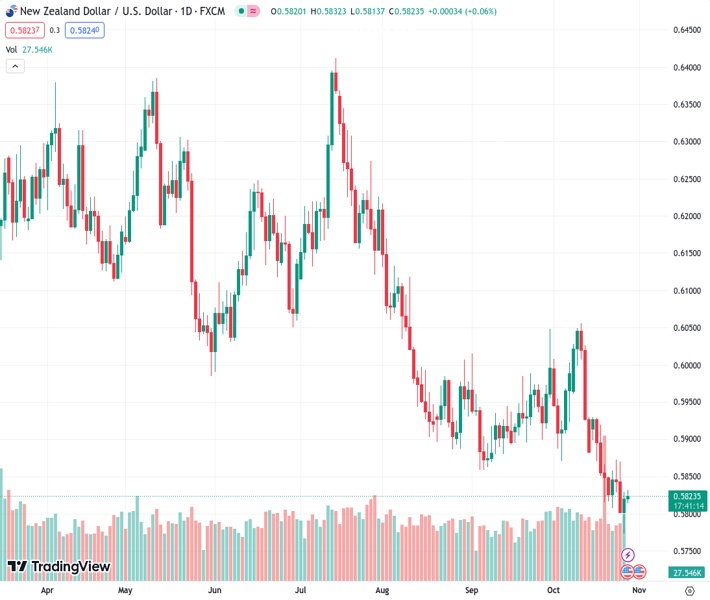 NZD/USD rebounds from the year-to-date low of 0.5772, trading around 0.5830 during the Asian session on Friday. The pair bid the lowest on Thursday since November 2022 as the New Zealand Dollar (NZD) is contending with pressure, with the situation exacerbated by the recent release of headline Consumer Price Index (CPI) data from the nation.