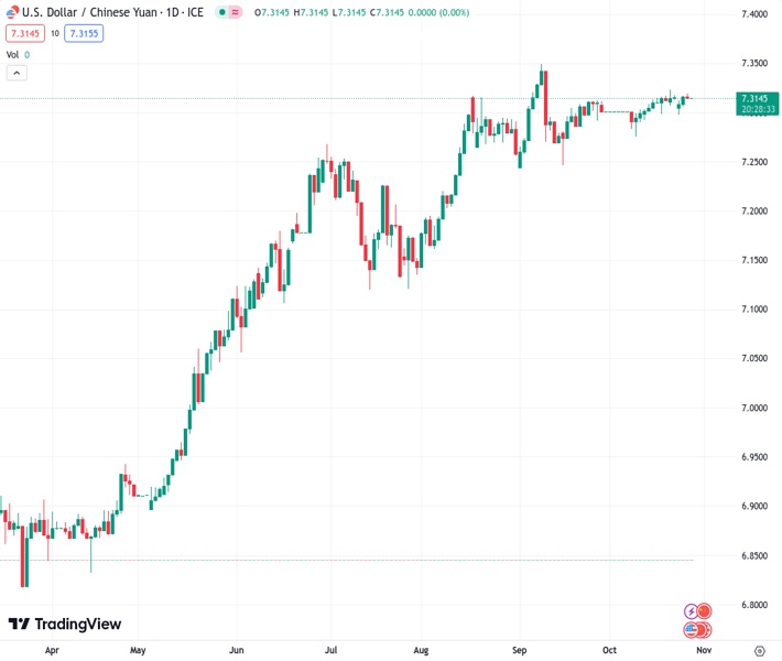 #USDCNY @ 7.32063 PBoC sets reference rate at 7.1782 vs. 7.1784 previous