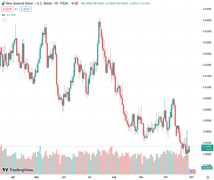 NZDUSD currently trading at 0.5829 at the time of writing. Pair opened at 0.581 and is trading with a change of 0.33 % .