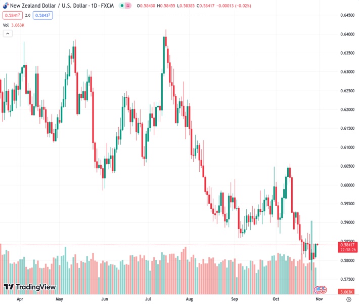 NZDUSD currently trading at 0.5845 at the time of writing. Pair opened at 0.581 and is trading with a change of 0.6 % .