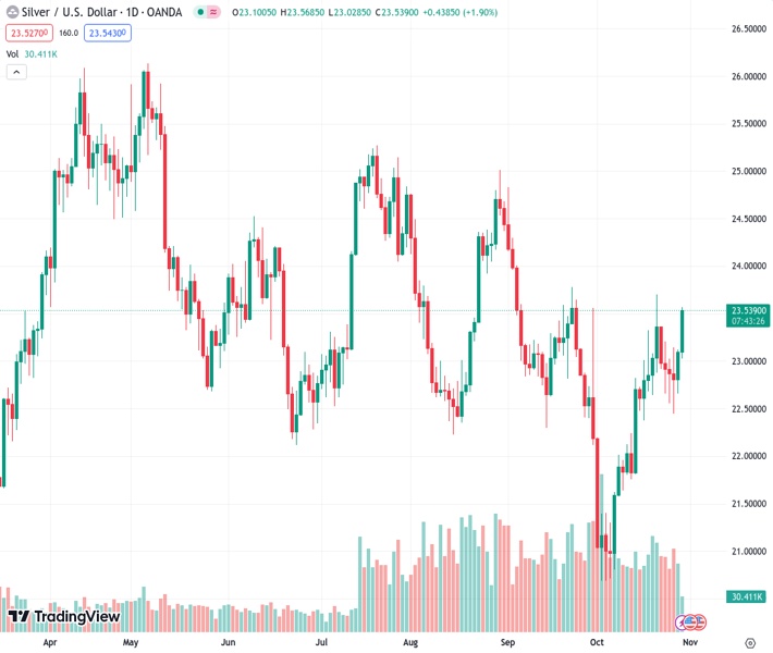 Silver price (XAG/USD) shifts auction above $23.00 after a sharp recovery as the ongoing conflicts between Israel and Palestine keep demand for safe-haven assets upbeat. The white metal is expected to deliver more upside as the ground assault from the Israeli army in Gaza would escalate expectations of Iran’s intervention, which would widen Middle East tensions.