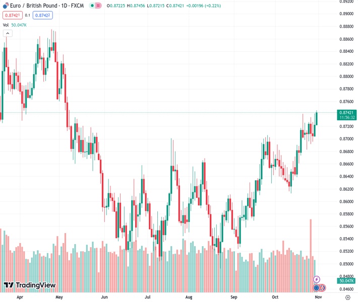 EURGBP currently trading at 0.8741 at the time of writing. Pair opened at 0.8723 and is trading with a change of 0.21 % .