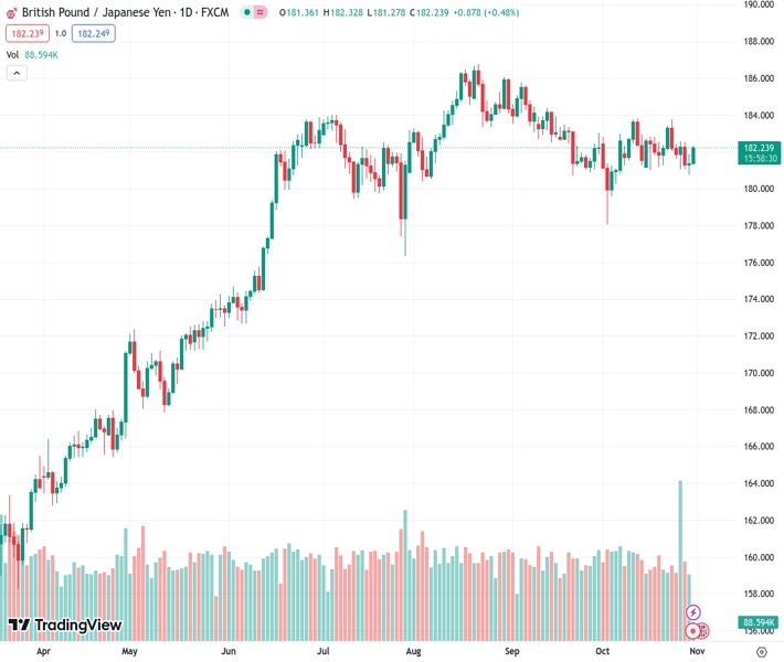 #GBPJPY @ 182.284 gains momentum around 182.15 after the BoJ rate decision.