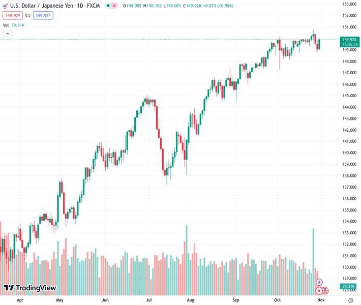 USDJPY currently trading at 149.92 at the time of writing. Pair opened at 149.1 and is trading with a change of 0.55 % .