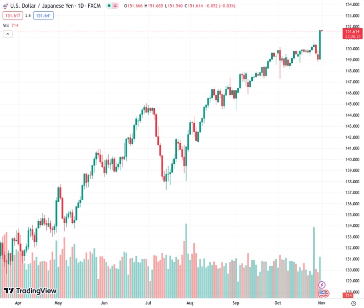 USDJPY currently trading at 151.65 at the time of writing. Pair opened at 149.1 and is trading with a change of 1.71 % .