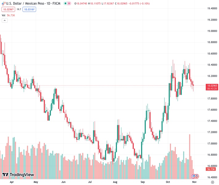 #USDMXN @ 18.0335 : The hurdle at 18.48/18.60 must be overcome to denote a larger uptrend – SocGen