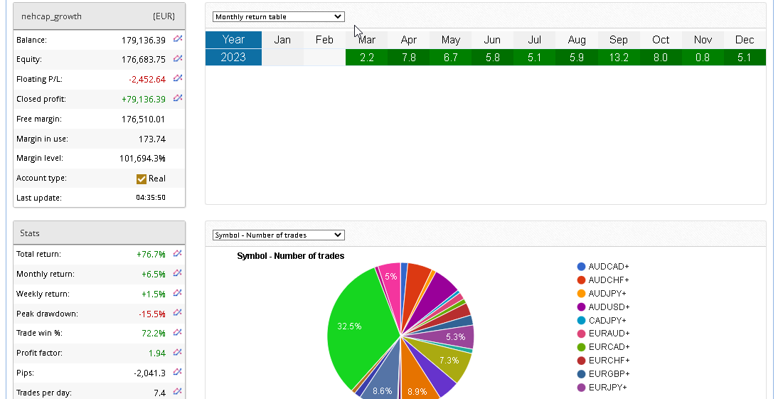 The performance of EA_GROWTH is detailed here. This is one of the smoothest system active and available to clients anywhere on internet. The system operates on LIVE account so its very safe. We have made substantial wealth with this system