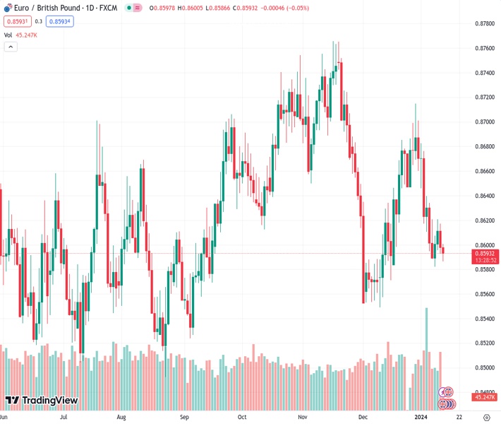 EURGBP currently trading at 0.8592 at the time of writing. Pair opened at 0.8599 and is trading with a change of -0.08 % .