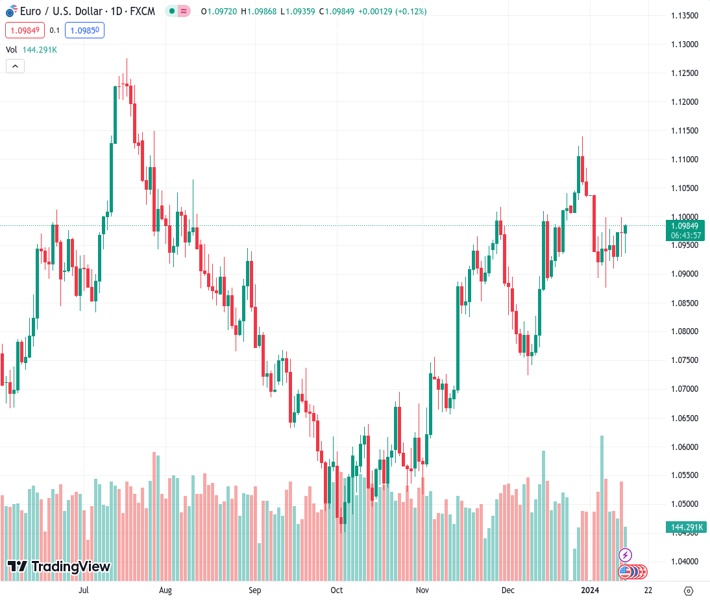 EURUSD currently trading at 1.0976 at the time of writing. Pair opened at 1.0972 and is trading with a change of 0.04 % .