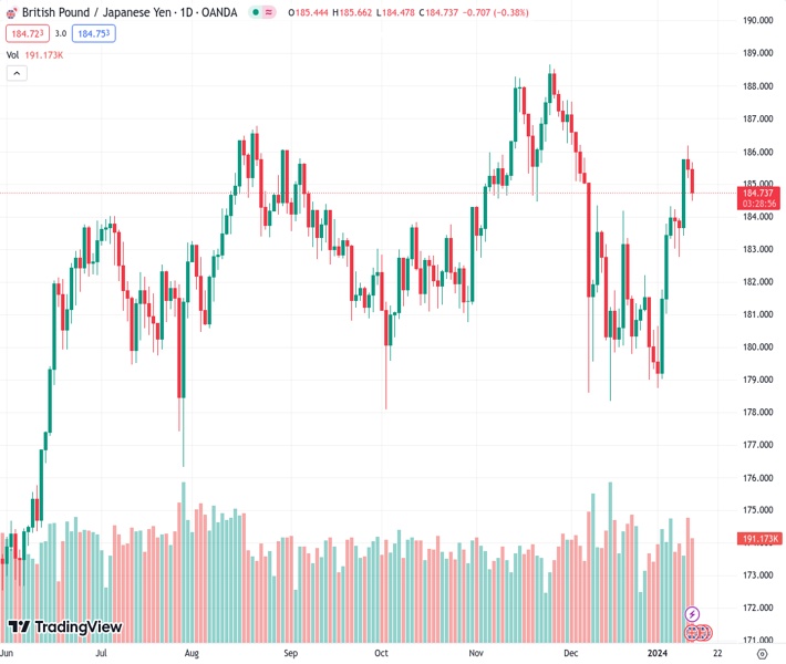 GBPJPY currently trading at 184.76 at the time of writing. Pair opened at 185.53 and is trading with a change of -0.42 % .