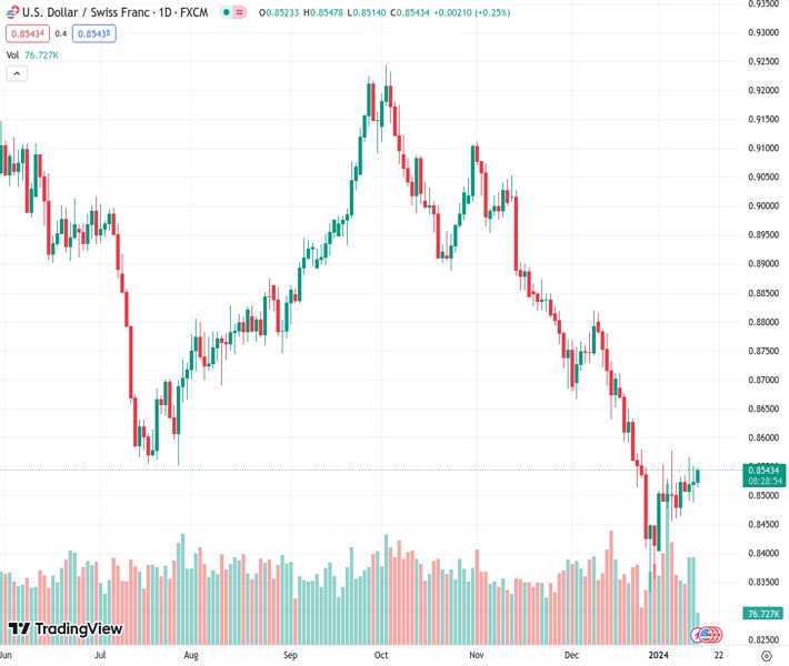 USDCHF currently trading at 0.8544 at the time of writing. Pair opened at 0.8522 and is trading with a change of 0.26 % .