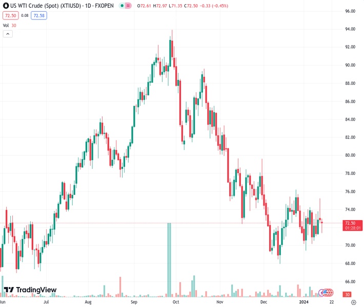 XTIUSD currently trading at 72.55 at the time of writing. Pair opened at 72.85 and is trading with a change of -0.41 % .