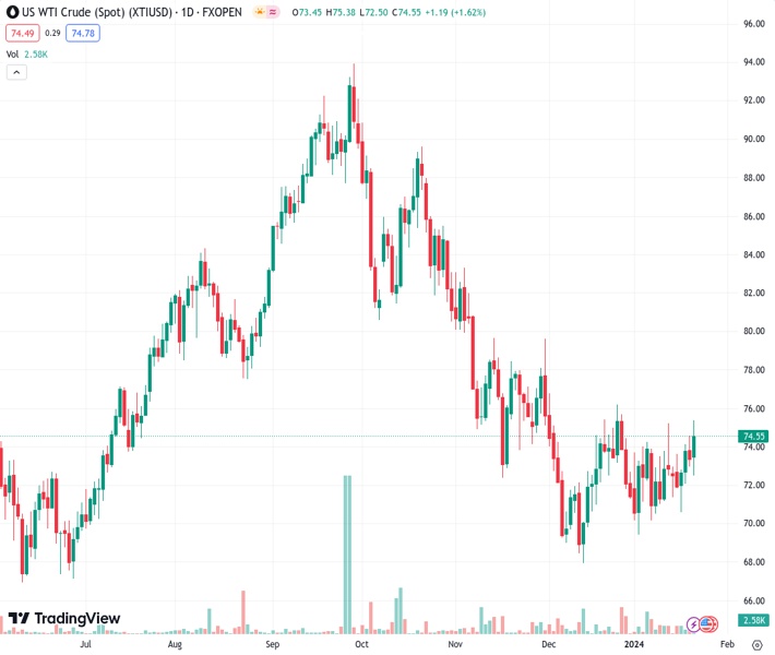 XTIUSD currently trading at 74.64 at the time of writing. Pair opened at 73.6 and is trading with a change of 1.41 % .