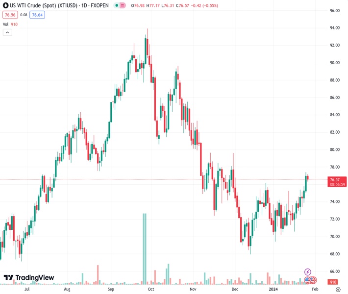 Oil prices could be seen surging higher from here after markets jumped on the element of China mingling in the Red Sea tension. Either way, the three-week-long-haul around Africa will see more demand coming in for fuel to say the least. Despite these elements supporting higher oil prices, OPEC itself said it will not look at further production measures in its upcoming meeting on February 1st, which delivers a blow to any further upticks.