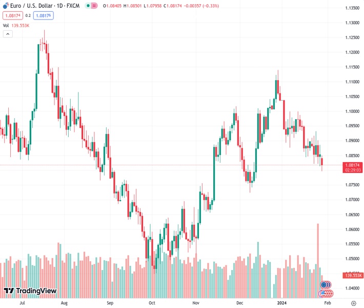 EUR/USD accentuated its bearish feeling and broke below the 1.0800 support level to print fresh multi-week lows at the beginning of the week. In the euro docket, the advanced Q4 GDP Growth Rate in Germany and the broader Euroland will take centre stage on January 30.