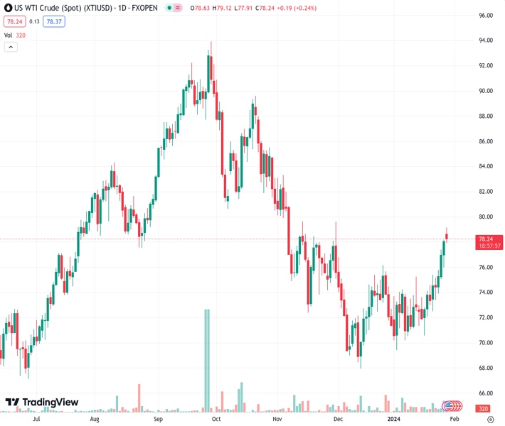 WTI price gained ground on the threat of supply disruption in the Red Sea. (Pivot Orderbook analysis)