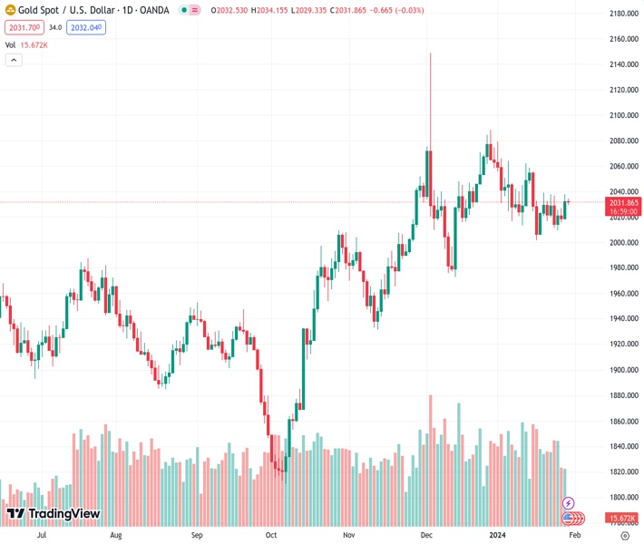 Gold price (XAU/USD) fails to capitalize on the previous day’s strength beyond the 50-day Simple Moving Average (SMA) and oscillates in a narrow trading band during the Asian session on Tuesday. The precious metal remains below the $2,040-2,042 supply zone and well within a familiar trading band as traders seek more clarity about the timing of when the Federal Reserve (Fed) will start cutting interest rates before placing fresh directional bets. Hence, the focus will remain glued to the outcome of the highly-anticipated two-day FOMC monetary policy meeting, scheduled to be announced on Wednesday.