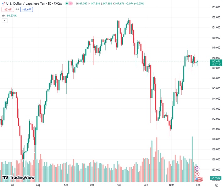 The Japanese Yen (JPY) attracts fresh sellers following an Asian session uptick against its American counterpart, though lacks follow-through and remains confined in a familiar range held over the past week or so. Japanese Retail Sales and Industrial Production figures for December missed market expectations, which, in turn, seem to undermine the domestic currency. Apart from this, a modest US Dollar (USD) uptick, supported by diminishing odds for a more aggressive policy easing by the Federal Reserve (Fed) in 2024, assists the USD/JPY pair to attract some buyers near the 147.20-147.15 region.