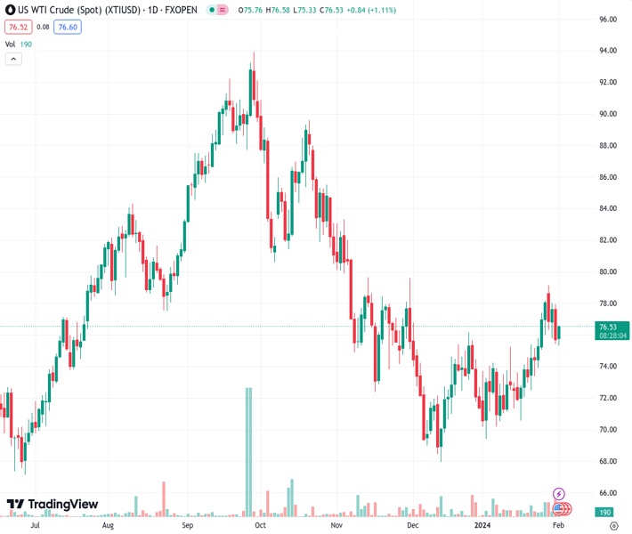 WTI Oil finds a floor for now near $76 in a sensitive market.