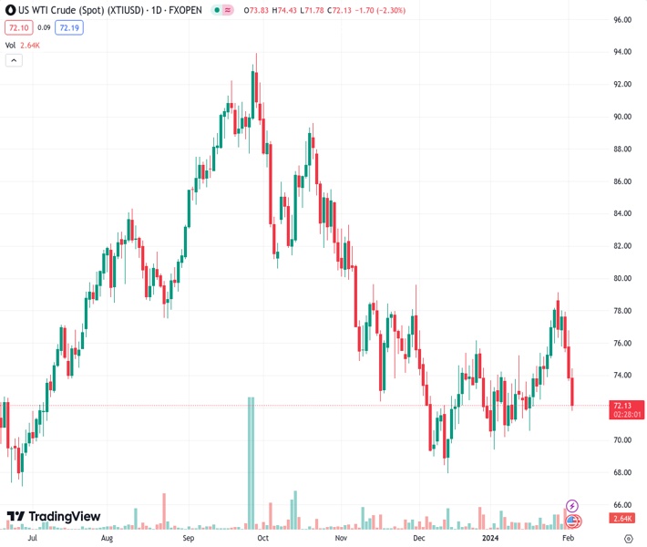 XTIUSD currently trading at 72.39 at the time of writing. Pair opened at 73.82 and is trading with a change of -1.94 % .