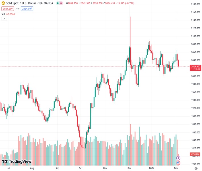 Gold price delivers a steep downside move as investors see a rate cut by the Fed delayed to May. The outlook for the precious metal has dampened as it has failed to sustain the breakout of the Symmetrical Triangle chart pattern formed on a daily time frame. The yellow metal has dropped below the 20 and 50-day Exponential Moving Averages (EMAs), which hover near $2,033 and $2,022 respectively.