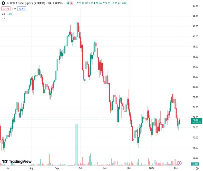 XTIUSD currently trading at 73.59 at the time of writing. Pair opened at 72.89 and is trading with a change of 0.96 % .