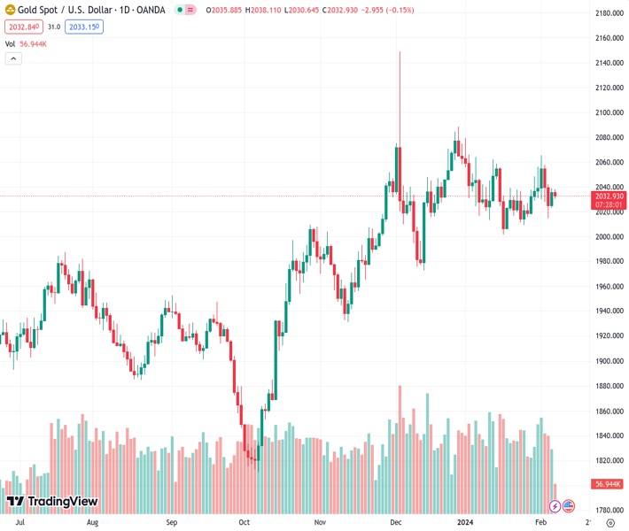 The US Dollar Index (DXY), which is negatively correlated to Gold price, have eased despite the fact the Fed is unlikely to cut interest rates in March – something that would usually weigh on the Gold. Even expectations for a rate cut in May have decreased significantly as the Fed lacks evidence that inflation will slow sustainably to its 2% target. Fed policymakers are worried premature action on interest rates could flare up price pressures again, cautioning that the last mile in taming price pressures is always tricky.