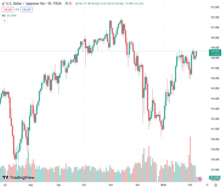 At the time of writing, USD/JPY is adding 0.30% on the day to trade at 148.64.