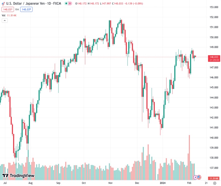 USD/JPY continues to trade tightly near the 148.00 price handle as markets gear up for Thursday’s trading session.