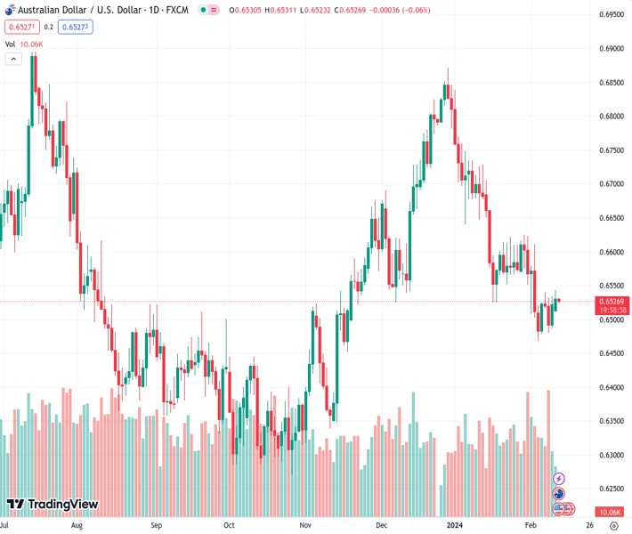 The Australian Dollar (AUD) retreats after posting gains in the previous two sessions, despite the release of improved Australia Consumer Confidence data on Tuesday. The Westpac-Melbourne Institute Consumer Sentiment index surged 6.2% to 86 in February from 81 in January, marking its highest reading in 20 months. However, the index remained below the neutral 100 mark since February 2022.
